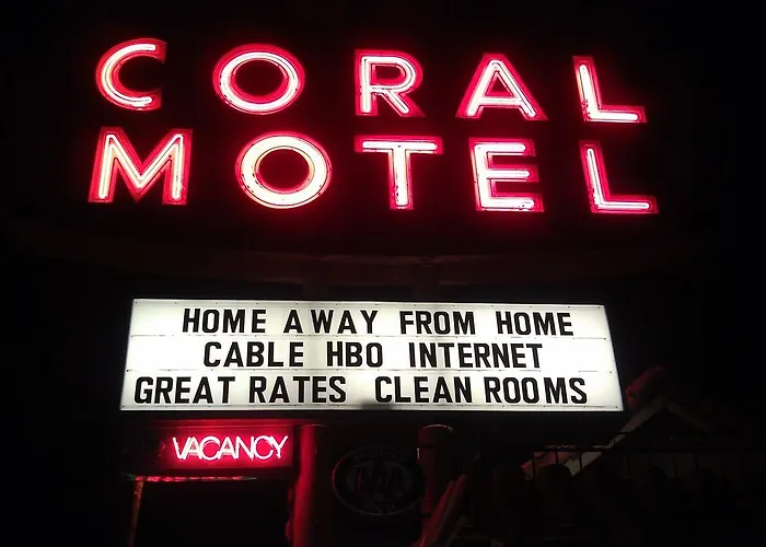 Los servicios del Coral Motel incluyen recepción abierta las 24 horas, aparcamiento gratuito y una piscina al aire libre, donde puedes relajarte y refrescarte. También se ofrecen instalaciones para reuniones, perfectas si viajas por negocios y necesitas un espacio adecuado para trabajar.
